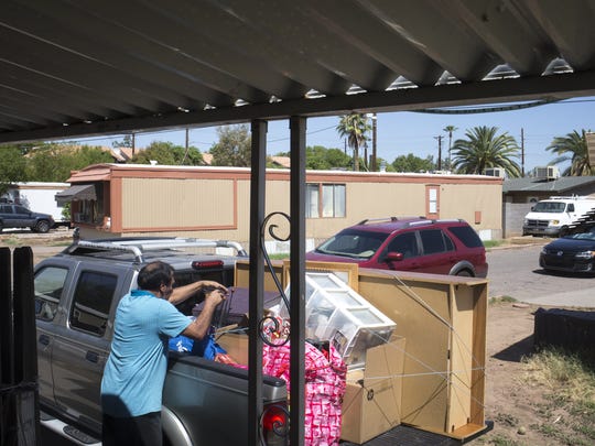 Jorge Flores packs his vehicle, July 19, 2018, at the Tempe Mobile Home Park, 2015 E. University Drive, Tempe. Jorge and his family have lived in the park for 18 years, but all residents must be out by Friday, July 27. (Photo: Mark Henle, Mark Henle/The Republic)