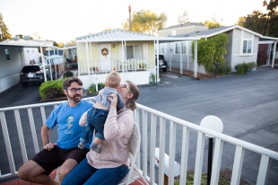 The Bornmann family at their home at the Santiago Villa mobile home park. In recent months, park residents have spearheaded a campaign to extend tenant protections to Mountain View’s sizable population of mobile-home residents.