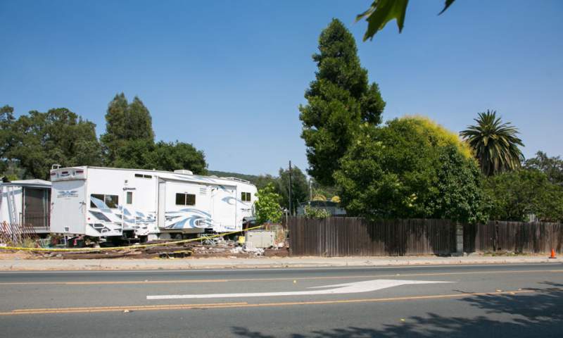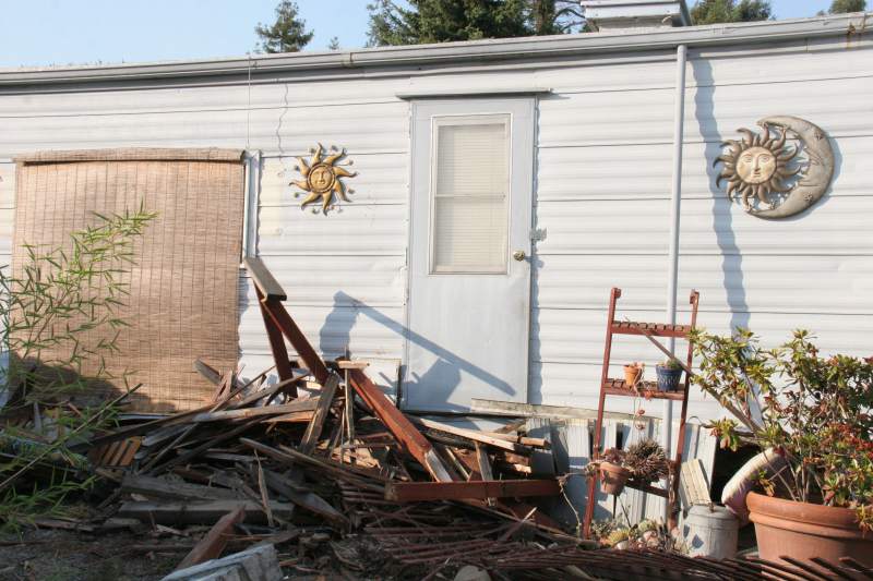 Residents of Acacia Grove Mobile Home Park in Boyes Hot Springs were cleaning up after breakfast last Saturday, June 30, when a pickup truck crashed through the redwood fence separating the park from Highway 12, striking two trailers and pushing one off its mount.