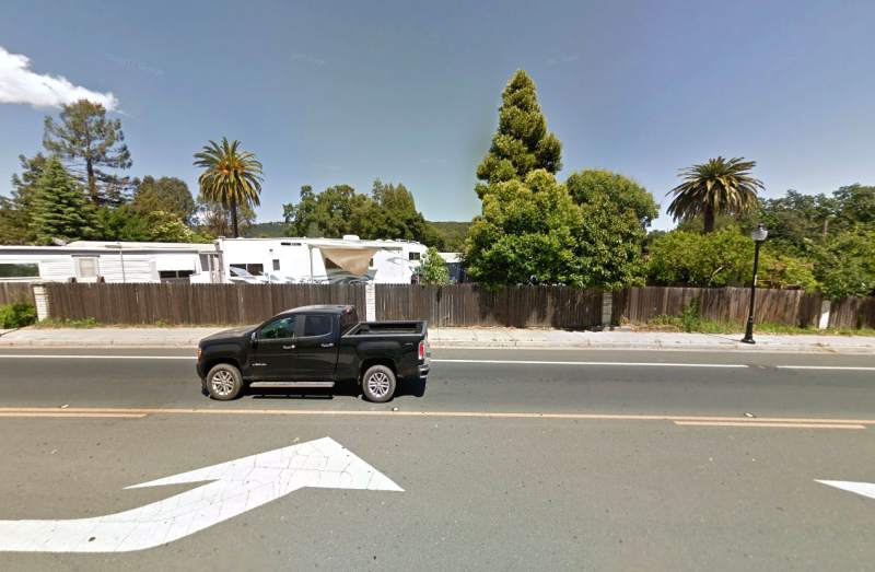 Some 30 feet from the destroyed fencing, a Caltrans street lamp had been severed from its mount by the truck where it apparently jumped the curb while northbound on Sonoma Highway.